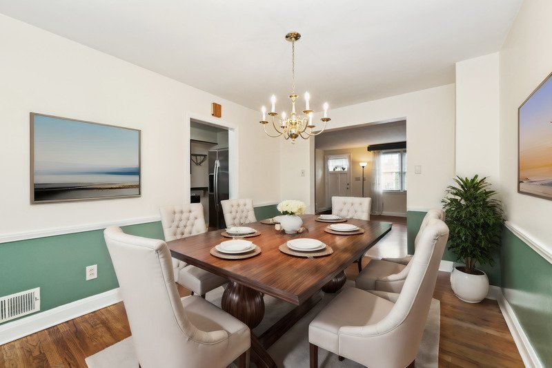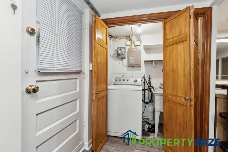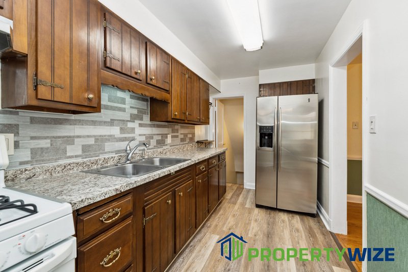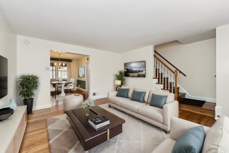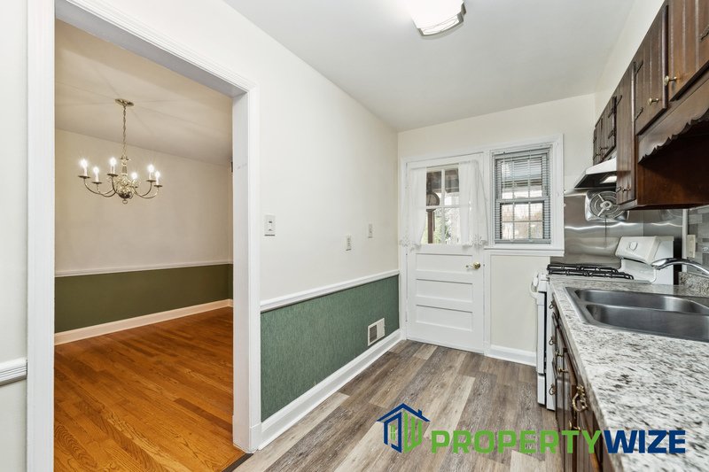 Welcome to this charming 3-bed, 1.5-bath Parkville townhome! Conveniently located near schools and shops, it features hardwood floors, a cozy living room, and a dining area. Upstairs, three bedrooms offer comfort, while the finished basement provides a bar and extra living space. Step outside to the covered porch and enjoy the beautiful landscape in backyard.