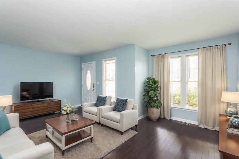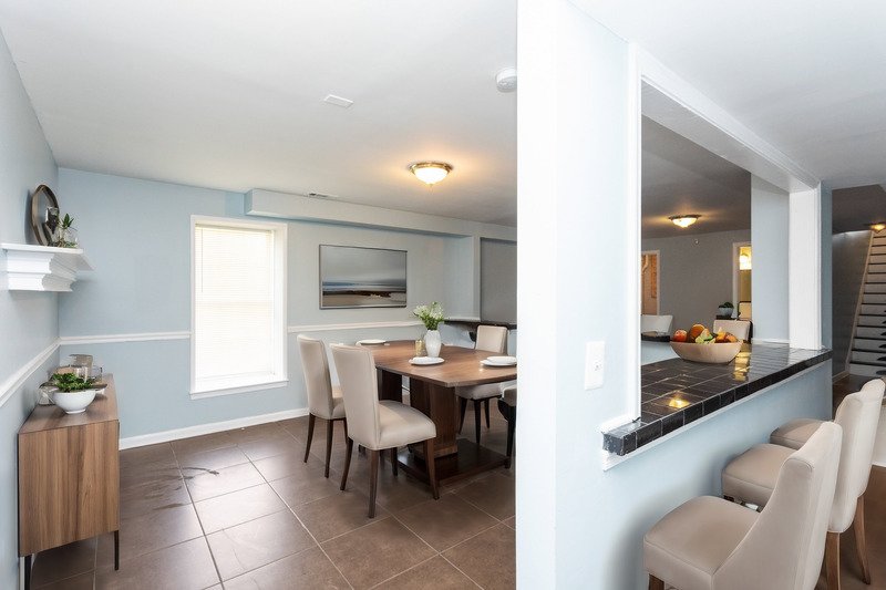 3BR 3BA Contemporary styled with an estimated 2454 finished sq. ft on main and lower levels- Stylish home features, hardwood floors, ceramic floors, stainless appliances, solid-surface/ corian counters, tiled showers, huge lower level gathering room with tiled bar space. If you like to entertain or need a large yard, then you will definitely appreciate the expansive deck and fenced yard.