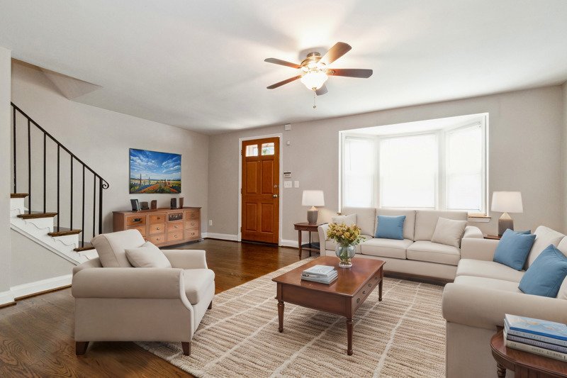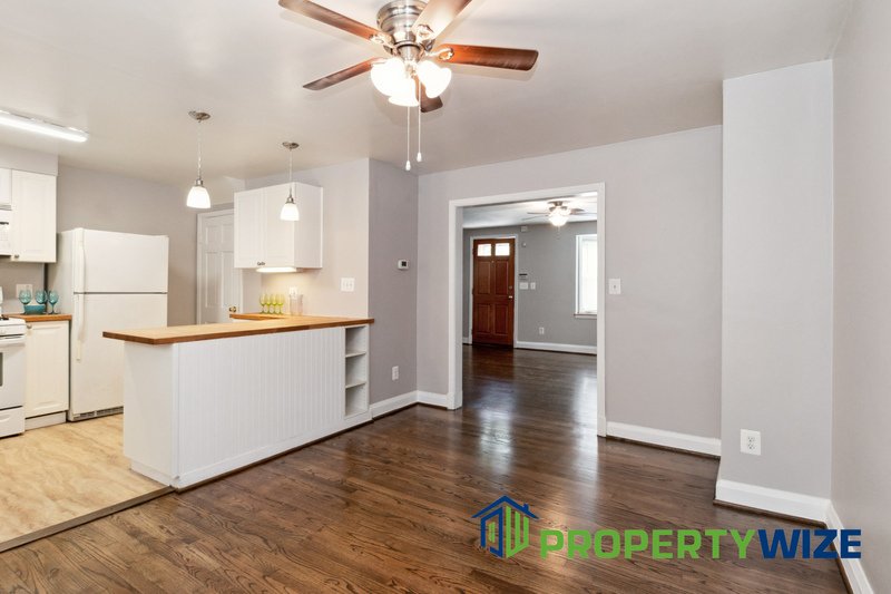 This charming & cozy 4-bedroom 1.5 bath townhome is waiting for you to call it home! Located on a homeowner block facing a park. It comes with central air, newly finished hardwood floor and 5 ceiling fans on both upper levels, open-floor plan in dining room and kitchen which equipped with ample storage space and authentic butchers block countertops. Lower level is finished basement with washer & dryer provided. There is a parking pad in backyard. It will not last long!