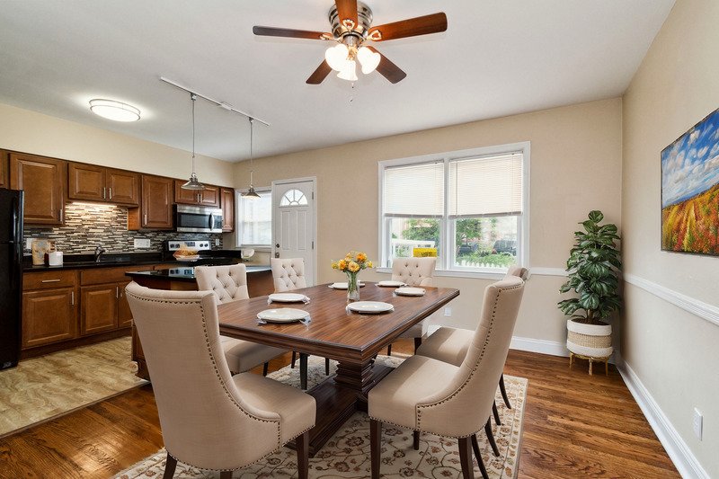 • Open-concept floor plan in kitchen and dining room