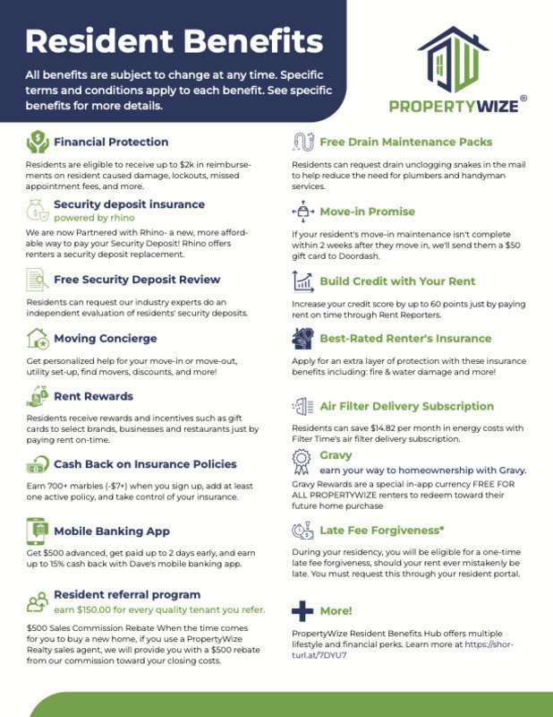Enjoy added value with our mandatory Resident Benefit Package, which offers: